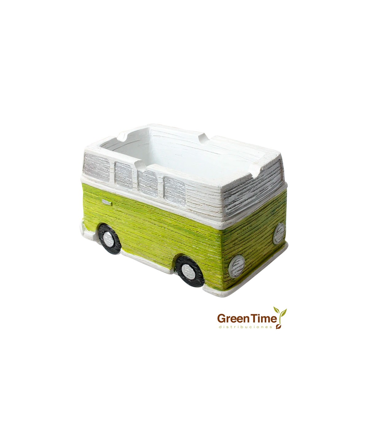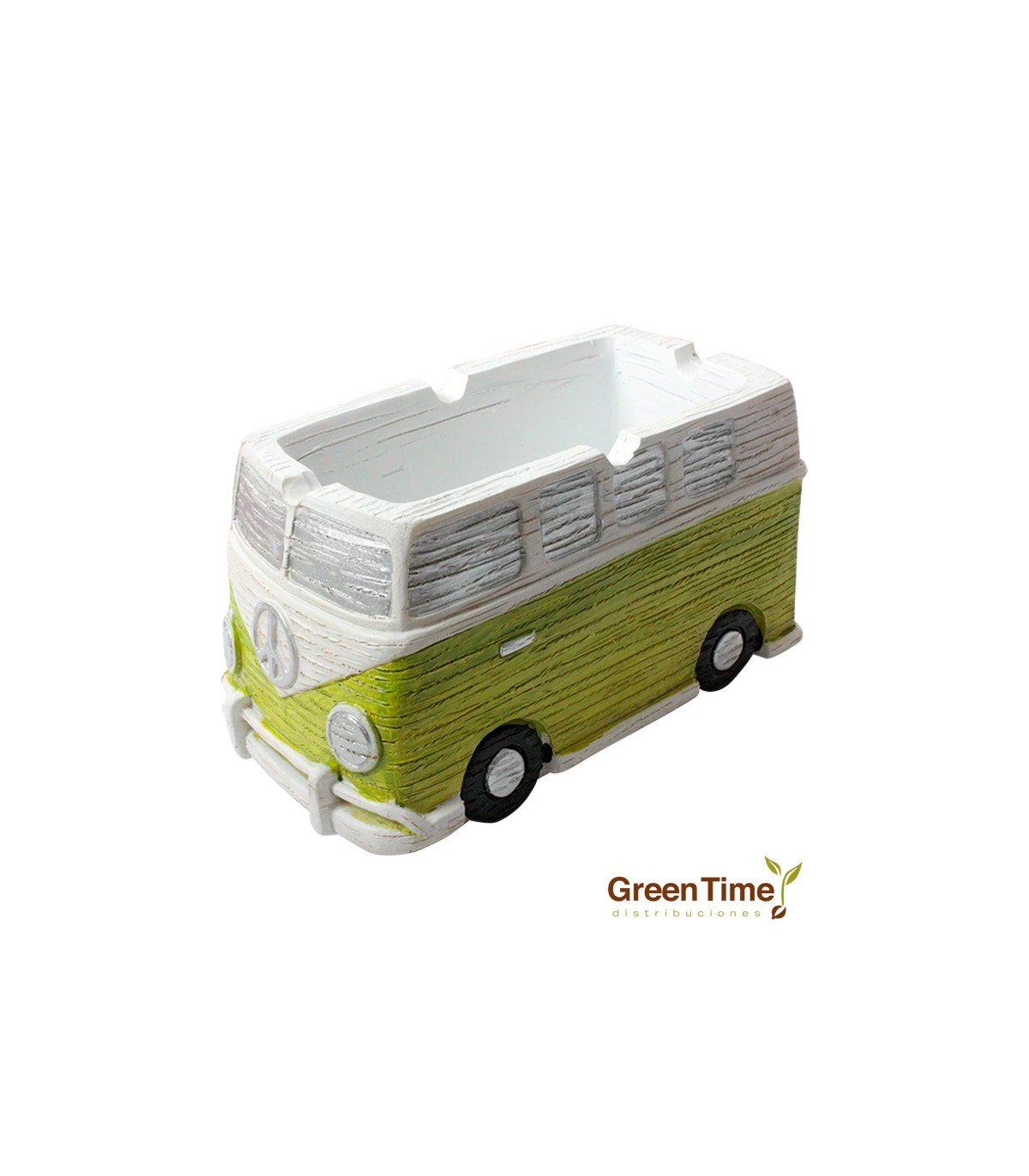 En Green Time Distribuciones presentamos el magnífico Cenicero Furgoneta Hippie, un cenicero con la forma de la mítica furgoneta Volkswagen Kombi, un ícono hippie.