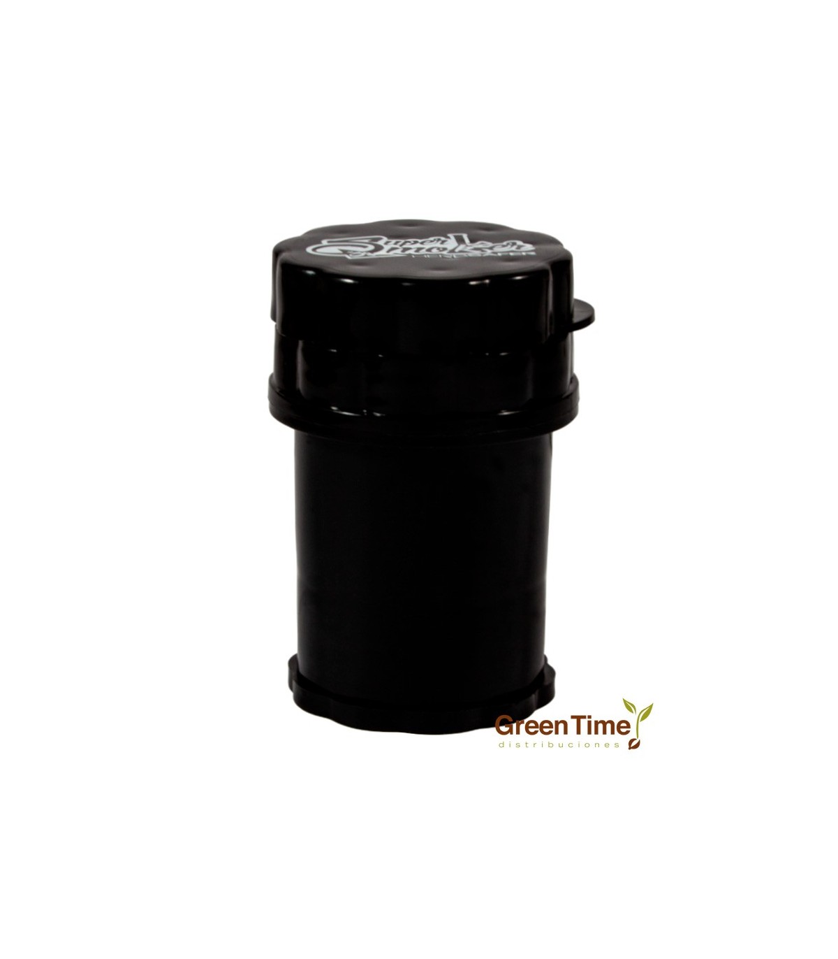 En Green Time Distribuciones presentamos el Grinder Triturador / Bote de conservación Super Smoker SuperHerb Safer (Ø60mm), un innovador dispositivo 3 en 1 de alta calidad diseñado para los entusiastas que buscan eficiencia y discreción en un solo producto. Este accesorio combina un potente grinder en su parte superior, un espacioso compartimento de almacenamiento en el centro y un recolector de resina en la base, permitiendo triturar, almacenar y recolectar tus hierbas de manera óptima.