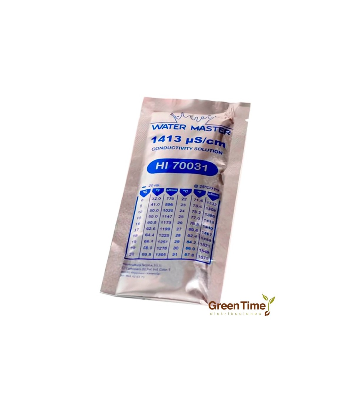 En Green Time presentamos el Liquido Calibrado EC 1413 de la marca Watermaster, una solución perfecta para calibrar los medidores de EC y así conseguir mediciones exactas. Formato de 25 sobres de 20 mililitros.