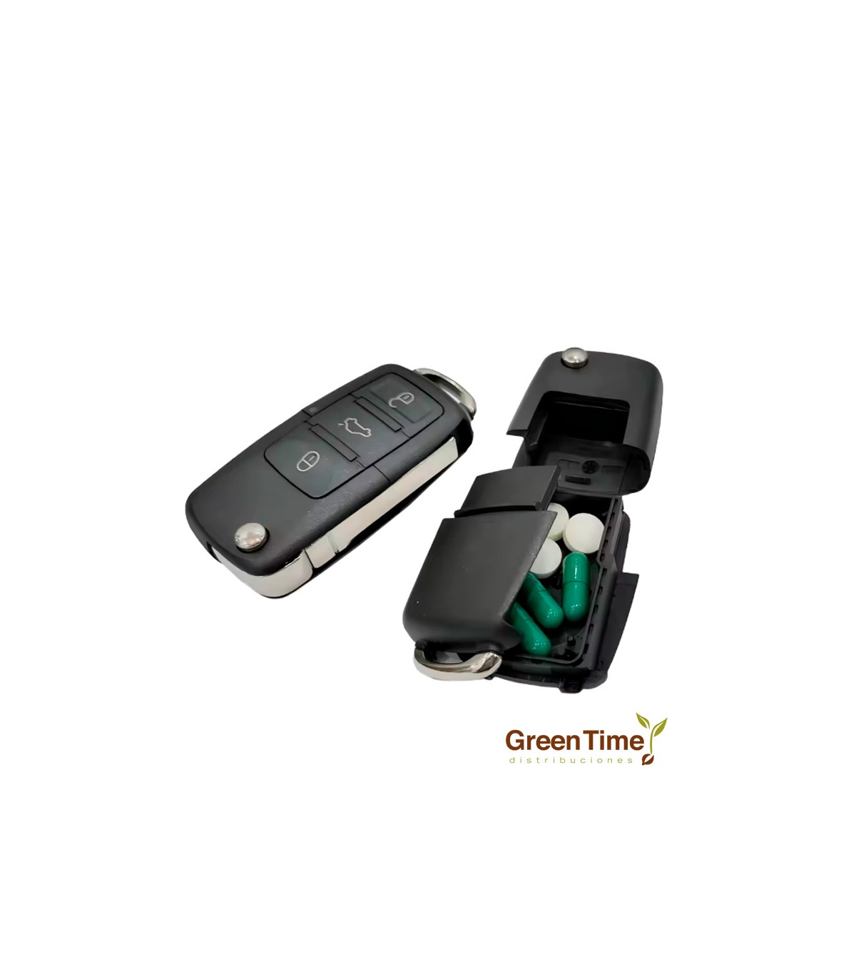 En Green Time Distribuciones presentamos Llave de Coche de Ocultación, falsa llave realista con compartimento secreto para guardar objetos pequeños con total discreción.