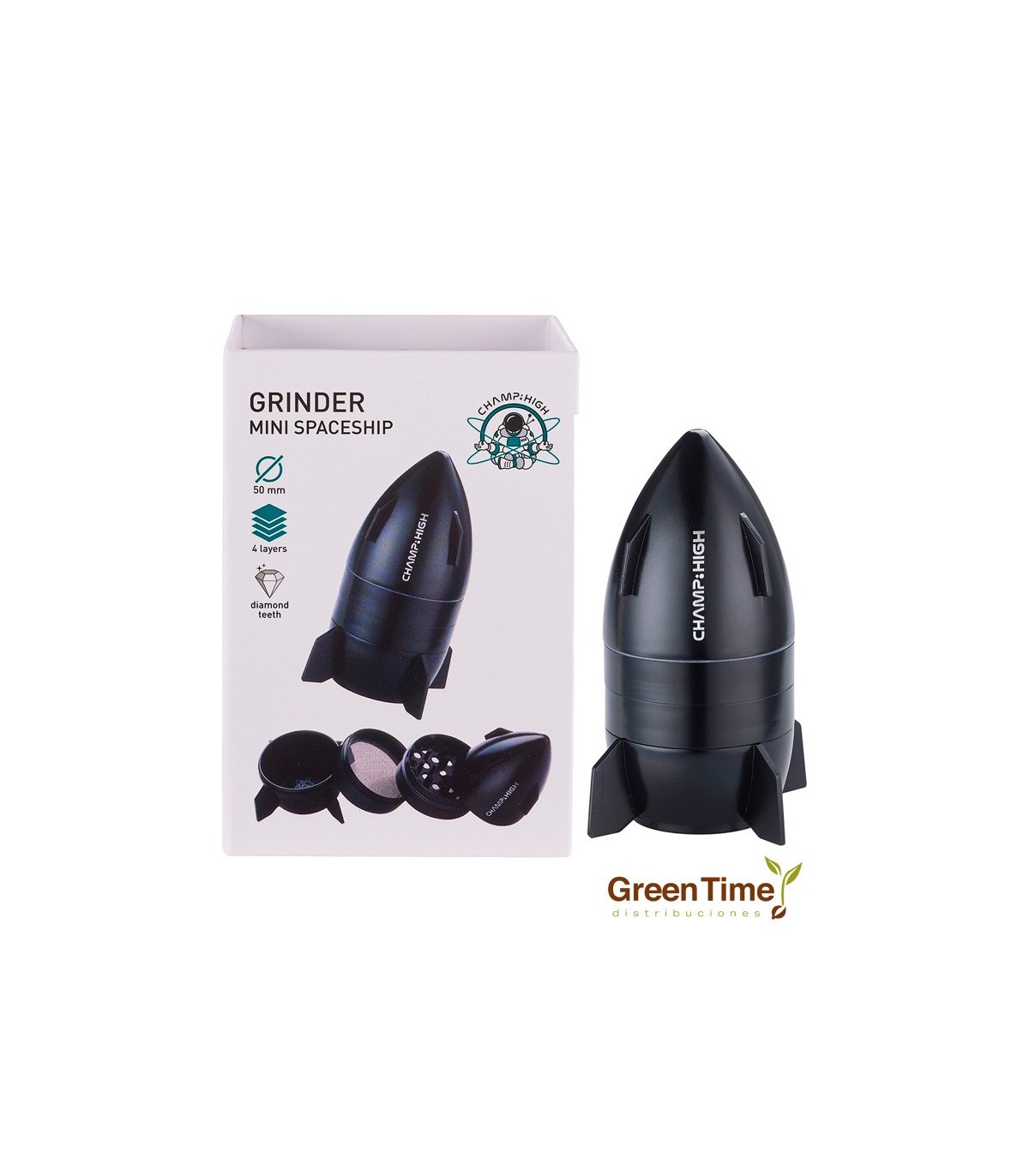 En Green Time Distribuciones presentamos el Grinder Cohete de 50 mm y 4 partes, un innovador triturador de hierbas diseñado por Champ High. Este grinder de cuatro partes ofrece una experiencia de molienda eficiente y estilizada, ideal para preparar tus hierbas favoritas.
