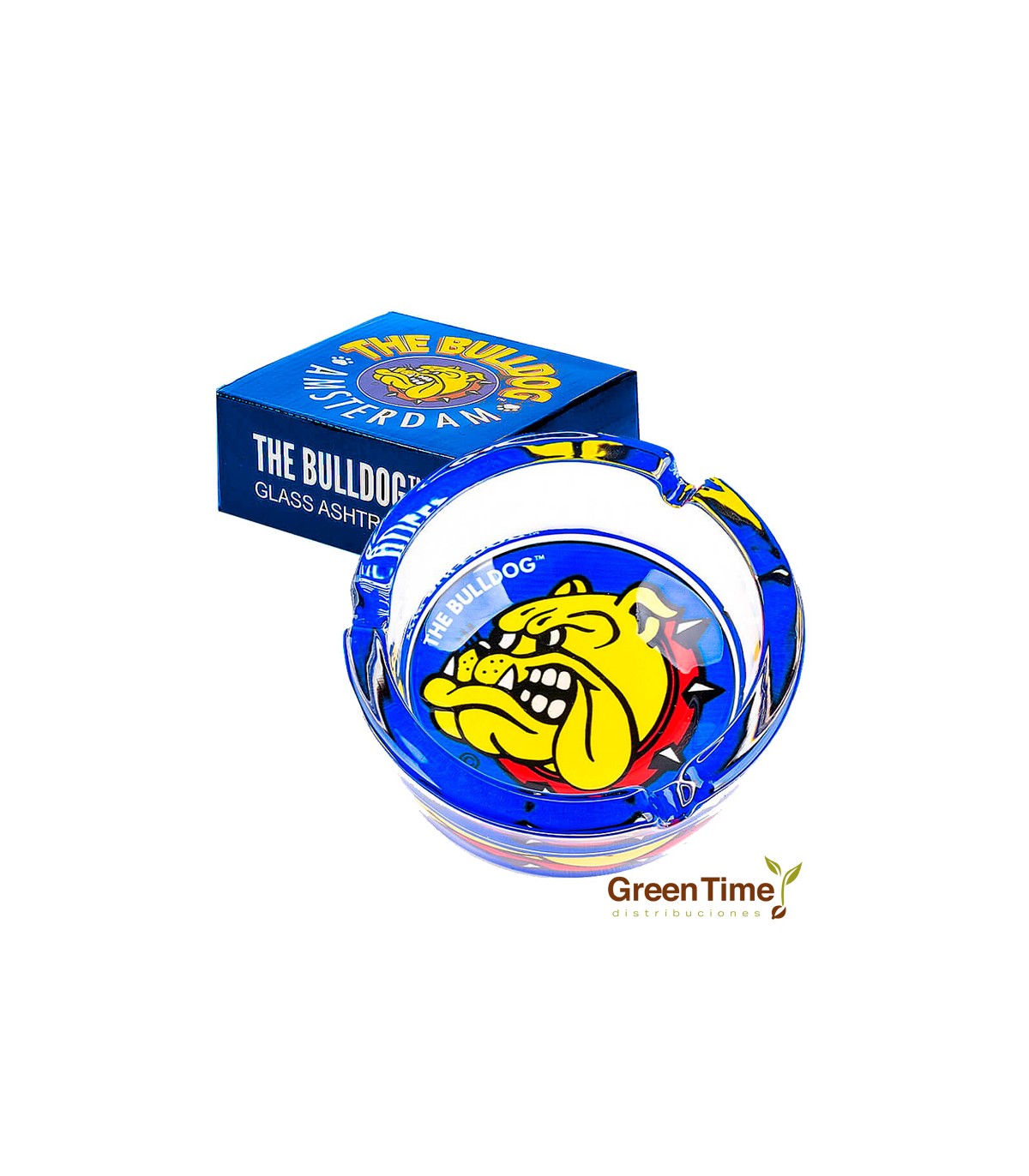 En Green Time Distribuciones presentamos el Cenicero de Cristal – The Bulldog, un accesorio elegante y resistente fabricado en vidrio grueso, ideal para fumadores que buscan estilo y durabilidad. Su diseño circular y transparente destaca por el emblemático logotipo de The Bulldog Amsterdam en el centro, convirtiéndolo no solo en un cenicero funcional, sino también en una pieza decorativa con carácter.